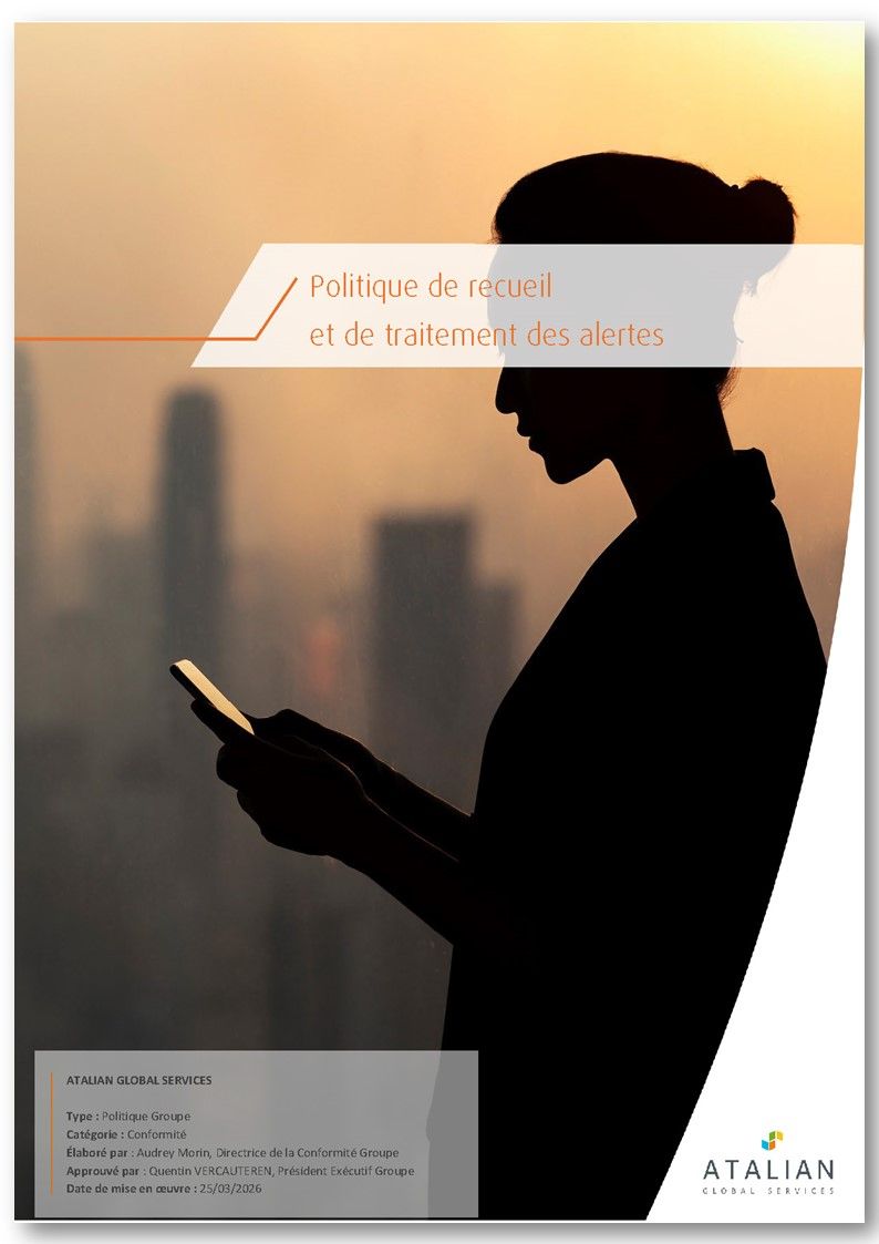 Depuis 2018, le groupe ATALIAN s’est construit et renforcé autour d’un programme de conformité qui répond aux exigences du cadre législatif et réglementaire des territoires où il opère. Ce programme de conformité s’appuie sur des codes, des procédures et des initiatives couvrant l’ensemble des problématiques de conformité pouvant advenir.